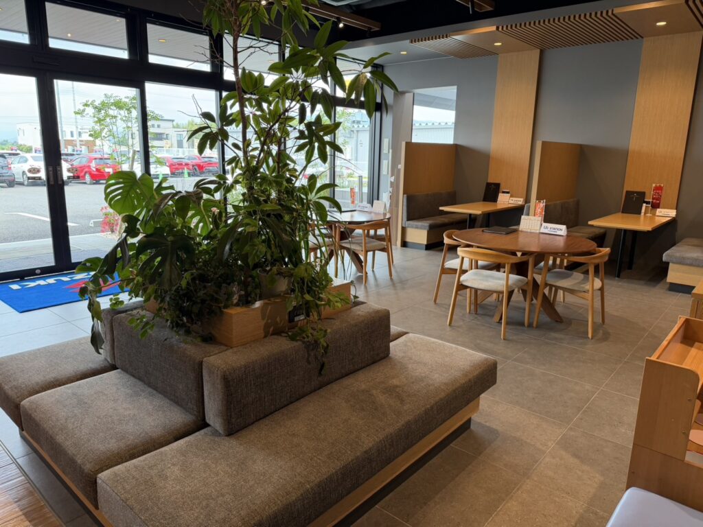店内はゆったり寛げるカフェのような雰囲気で、無料ドリンクサービスもあり、バイクを見ながらリラックスしてお過ごしいただけます。