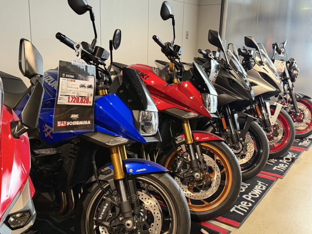 店内や屋外展示場には最新のスズキバイクを多数展示しており、実際の車両をご覧いただきながら、スタッフが丁寧にバイク選びをサポートいたします。