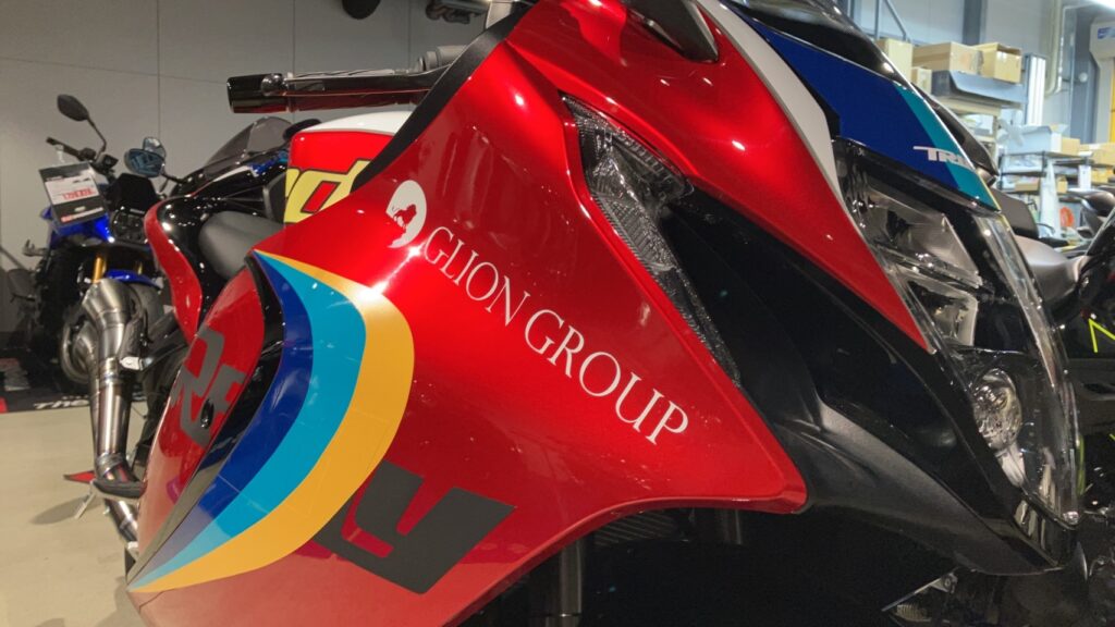 サイドにはGLION GROUPロゴ、テールには隼の筆文字エンブレムをブラックで同調させ、スポーティさと統一感を両立します。
