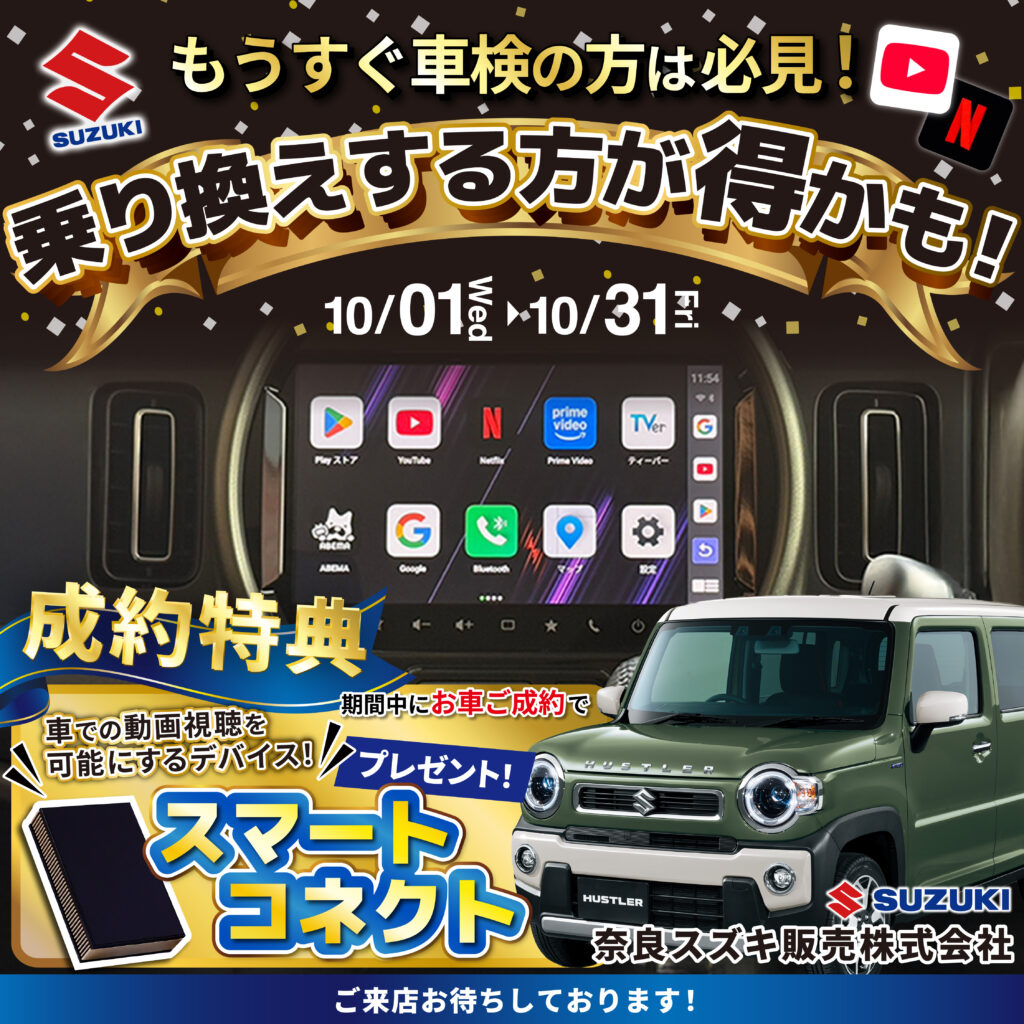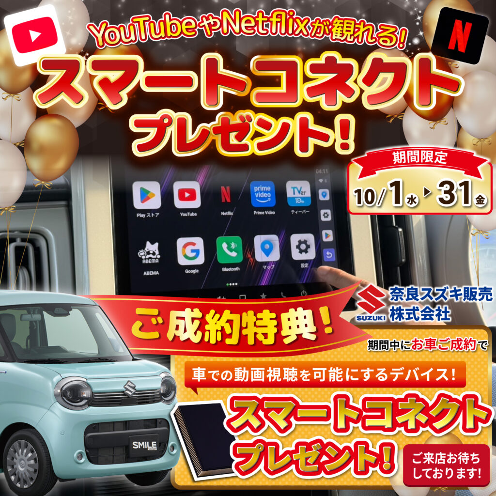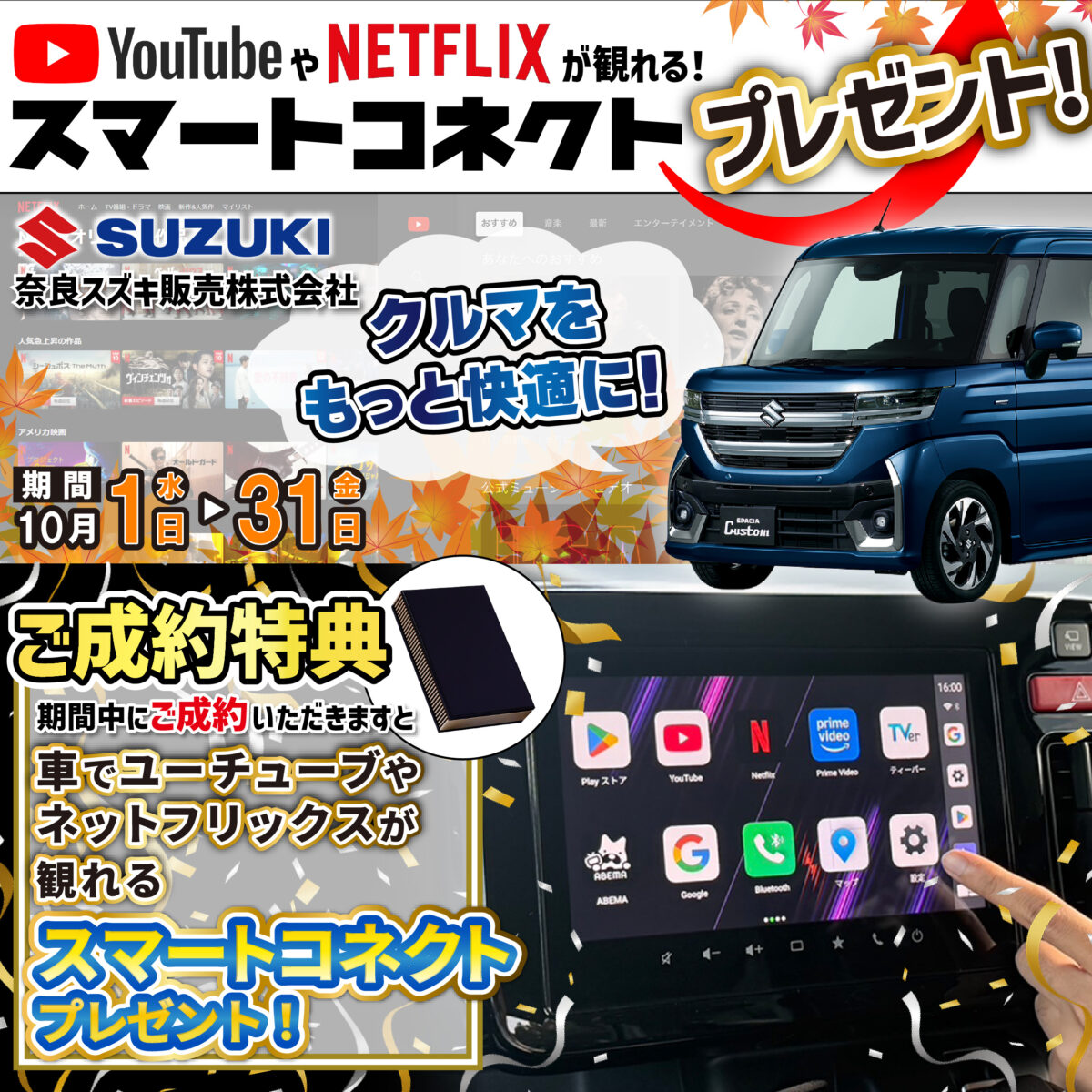 【10/1〜10/31限定開催】車でYouTube/ネットフリックスが観れる!“スマートコネクト”プレゼント🍁🚗