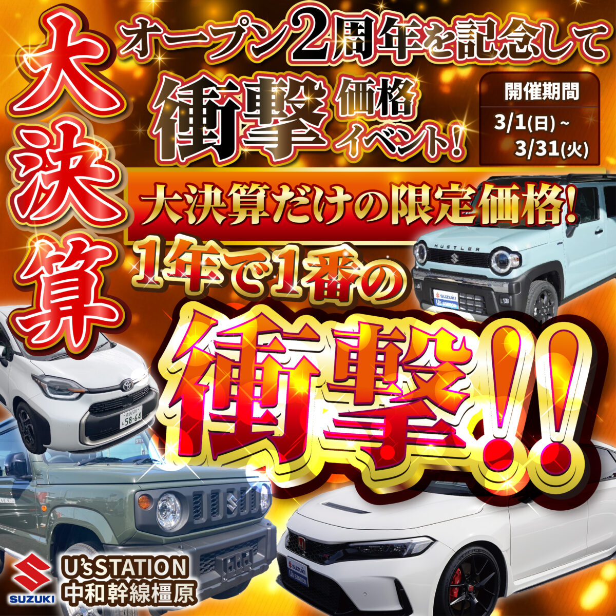 大決算!オープン2周年を記念して衝撃価格イベント開催!!🚗🔥 | 3/1(日)〜3/31(火)限定