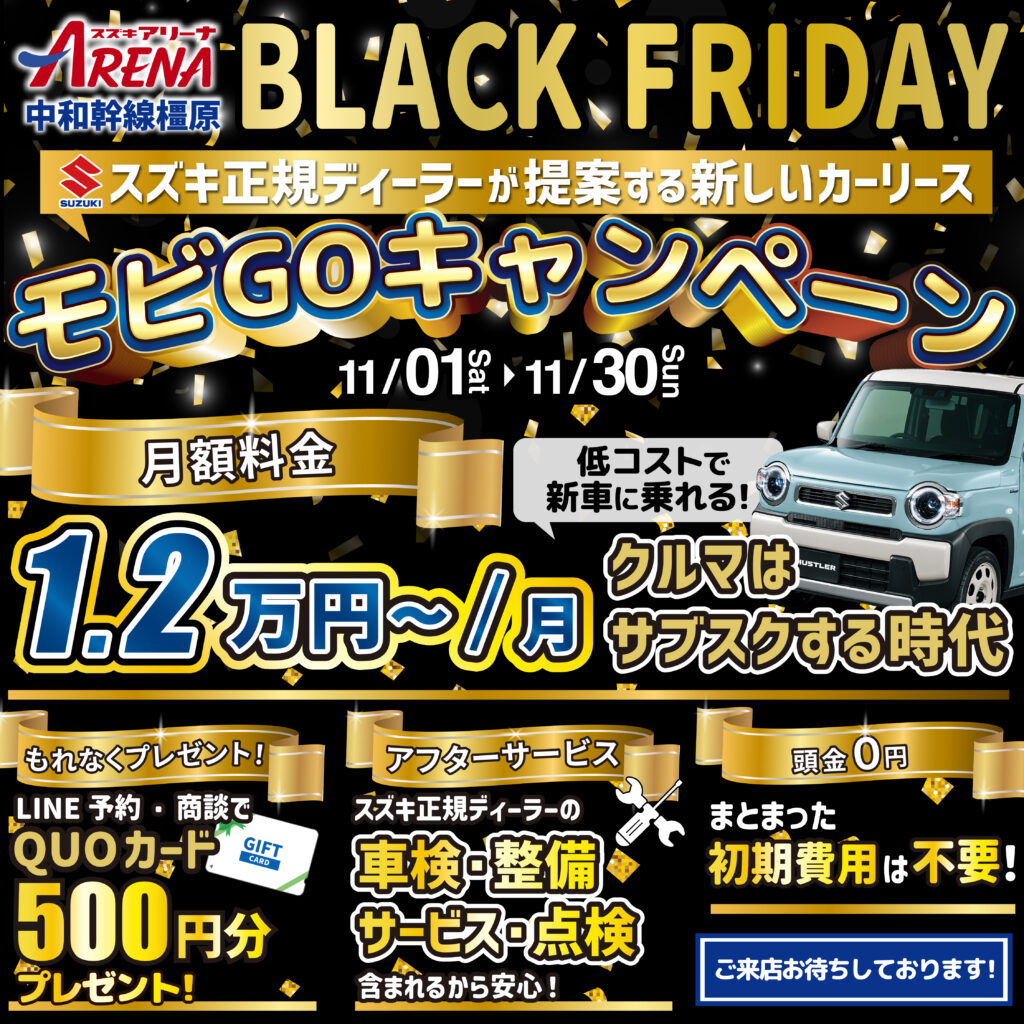 🖤ブラックフライデー🖤【モビGOキャンペーン】1.2万円〜/月で新車に乗れる!?