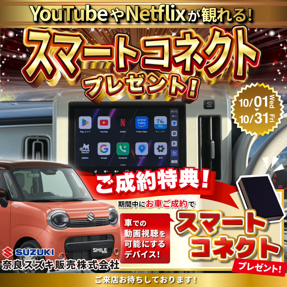 【秋のビッグチャンス!】車でYouTubeやNetflixが見放題!『スマートコネクト』プレゼントキャンペーン🌟