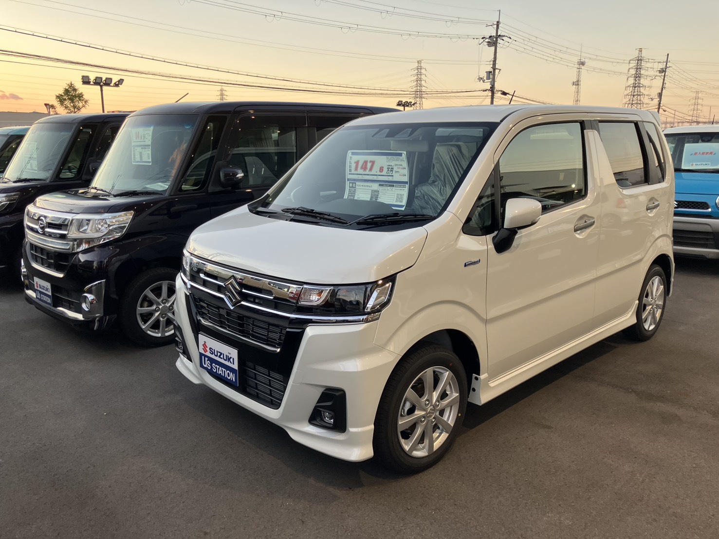 ✨キリッと存在感バツグン!ワゴンRカスタムが並ぶ夕方ショールーム🌇🚗💨