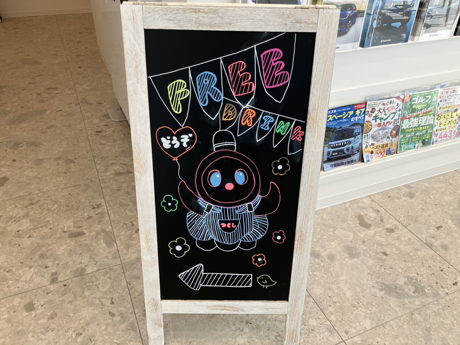 FREE DRINK の文字もカラフルで、なんだかちょっとワクワクする雰囲気🌈