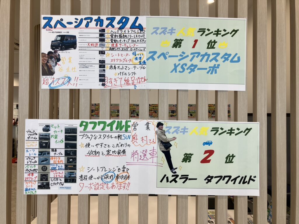 まず大きく掲げられているのは、スズキ人気ランキング✨
