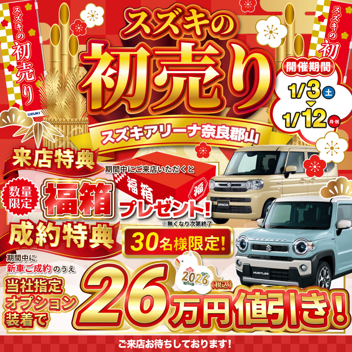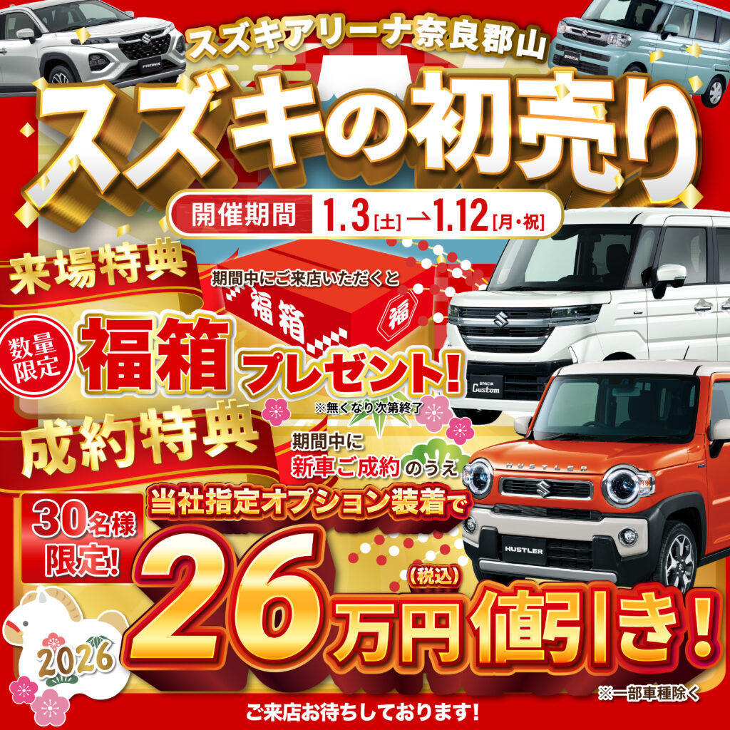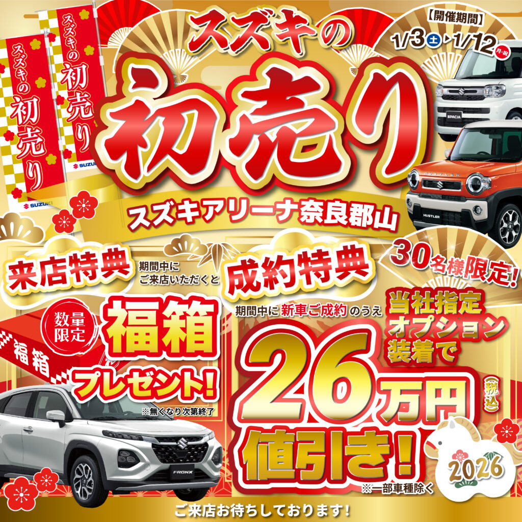 2026年の新車購入はここから!スズキの新春初売りフェア🎉1/3(土)~1/12(月祝)