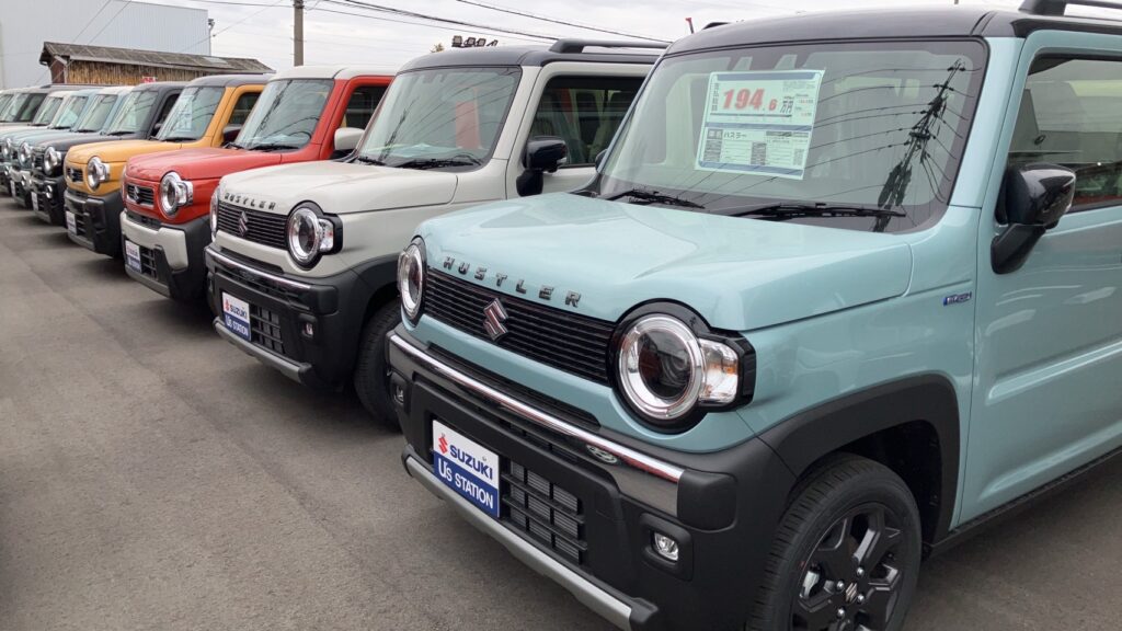 写真のように並んだハスラーを見ると、「どれにしようかな」と自然と楽しい気持ちになります😊